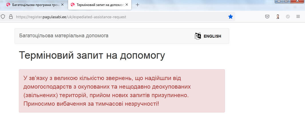 Моя чергова марна спроба реєстрації для отримання гуманіітарної грошової допомоги від Естонського Уряду у справах біженців.